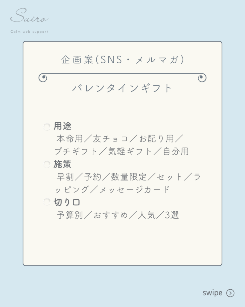 バレンタイン企画が決まると、SNSやメルマガのタイトルも作りやすくなる